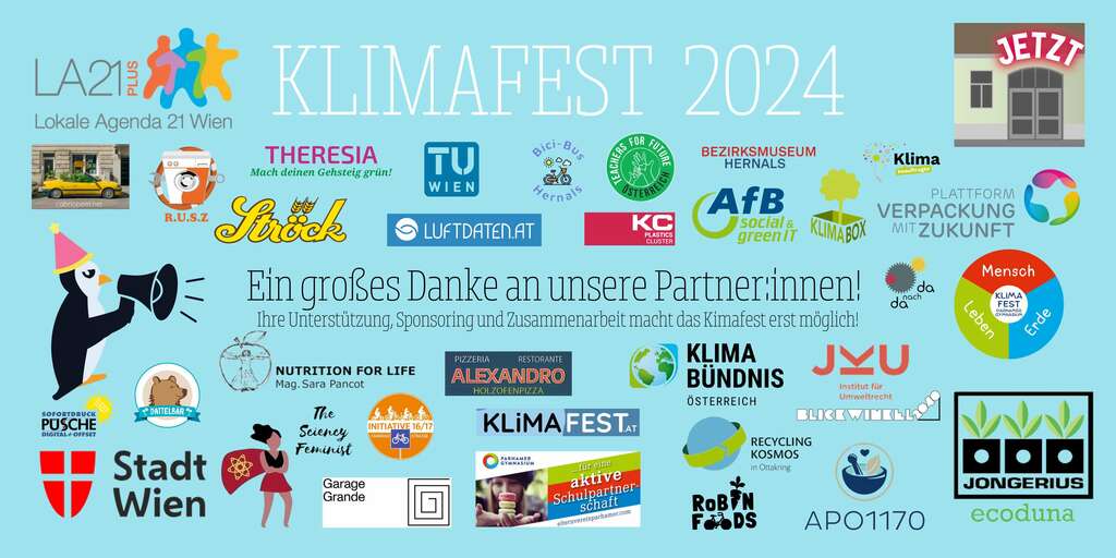 Ein großes Danke an unsere Partner:innen - Ihre Unterstützung, Sponsoring und Zusammenarbeit macht das Kimafest erst möglich!